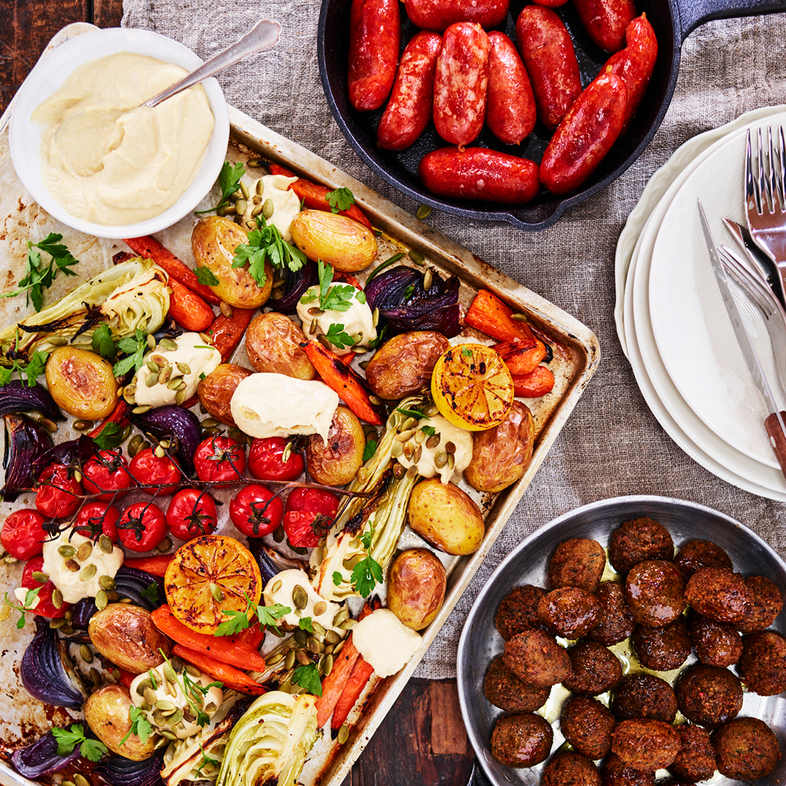 Täydellinen resepti illalliseen, joka kattaa kaikkien makumieltymykset. Kerää paljon syötävää yhdelle lautaselle ja lisää hummus. Jokainen voi valita makunsa mukaan. Loistava tilaisuus tyhjentää ruokakomero!