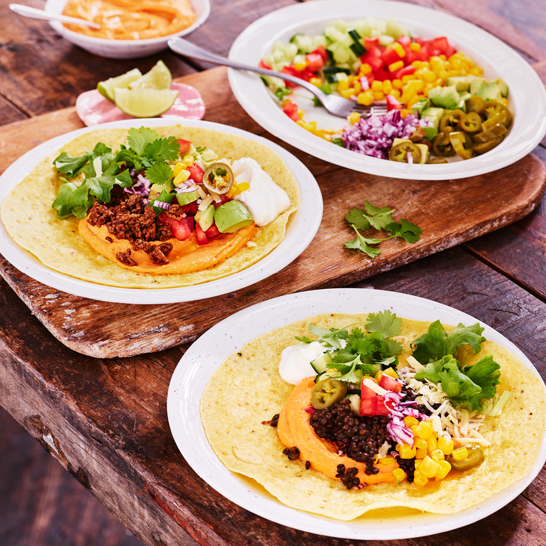 Nosta taco-ilta uudelle tasolle hummuksella! Tämä resepti sopii yhtä hyvin linssien kuin naudanjauhelihankin kanssa. Valitse mieluisesi täyte ja kaikki ovat tyytyväisiä. Koska kukapa ei rakasta tacoja?