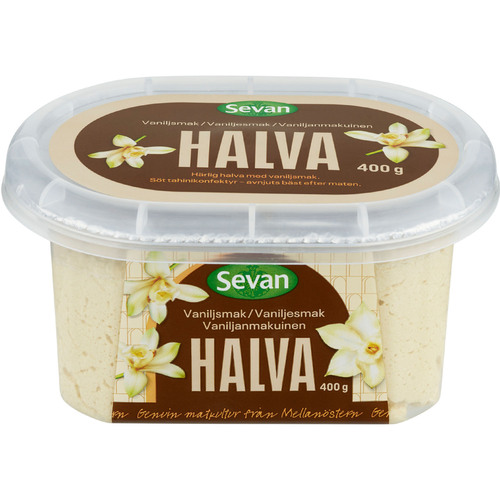 Sevanin Halva on valmistettu makeutetusta, murskatusta tahinista. Nimi "Halva" tulee arabian kielen sanasta "halawa", joka tarkoittaa "makeaa". Sillä on ihana karamellimainen maku, juuri sopivasti makeutta ja sitä on helppo leikata. Tarjoile sitä perinteisellä tavalla teen tai kahvin kanssa, välipalana tai jälkiruokana. Halvaa voidaan käyttää myös jäätelön kanssa tai kakkujen täytteenä.