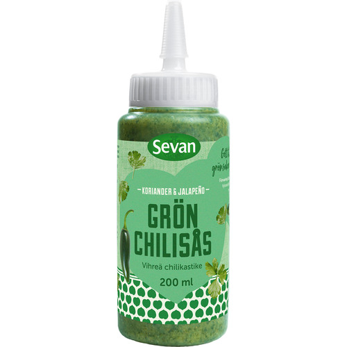 Vesi, korianteri (19%), rapsiöljy, jalapeño (3%), sakeuttamisaine (E1442, E415), suola, happamuudensäätöaine (E330), valkosipuli, säilöntäaine (E202), kardemumma.